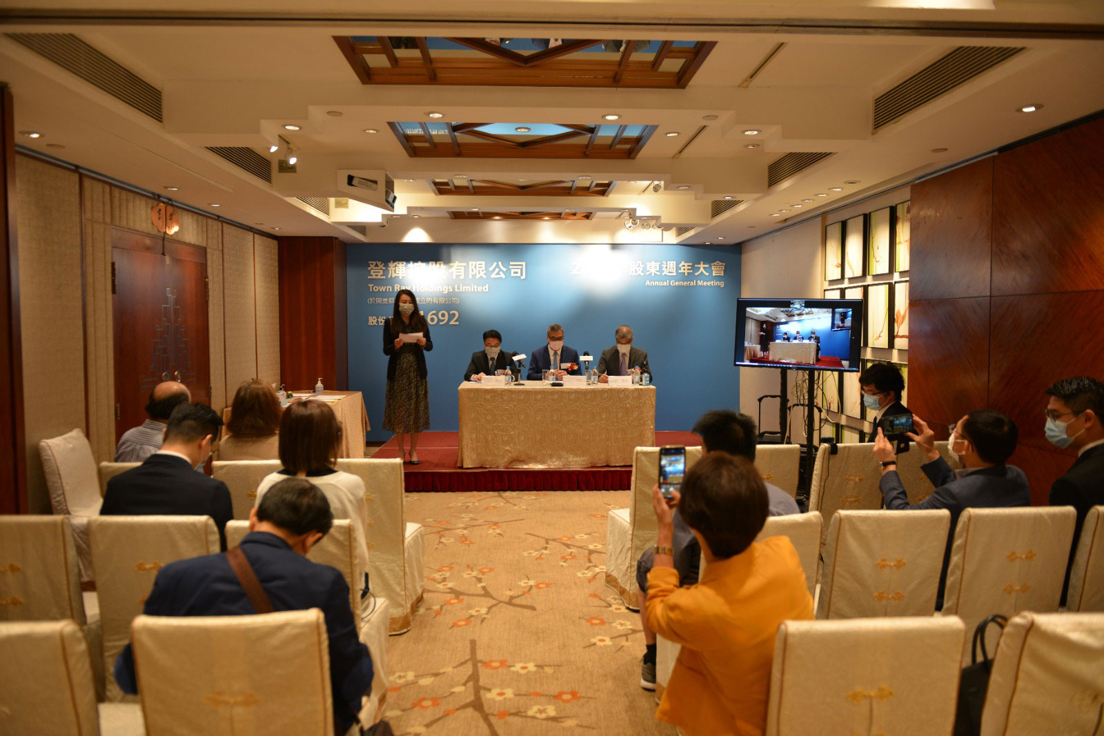 An annual general meeting (the ‘‘AGM’’) of Town Ray Holdings Limited was held in the morning of Friday, 28 May 2021 at The Royal Garden Chinese Restaurant of the The Royal Garden in Tsim Sha Tsui East. The AGM was hosted by the Company’s Chairman and non-executive Director, Dr. Chan Kam Kwong Charles. The Company’s Secretary and Executive Director, Mr. Chiu Wai Kwong, conducted the procedures and handled the resolutions submitted to the AGM. All the proposed resolutions were duly passed by the Shareholders by way of poll as ordinary resolutions of the Company.